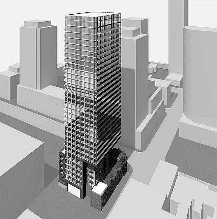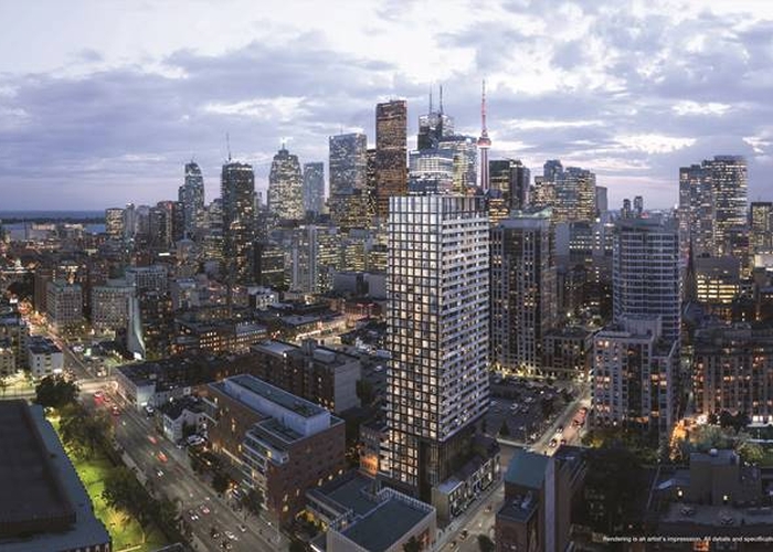 These 32-storey condos contain 234 units (85 one-bedroom units, 123 two-bedroom units, and 26 three-or-more bedroom units.) located in one of the busiest parts of Toronto.