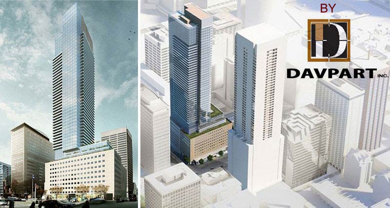 The design of the modern development will maintain the original 9-storey office and retail limestone base and will remediate and also restore historically significant facades, stripping away weak additions to restore as well as improve the original beauty of the existing structure. The windows will be recreated in a historically-accurate manner and the delicate tracery of the original lead panel spandrels will likely be replicated. The bas relief sculpture created by Elizabeth Wynn Wood is going to be transferred from its current place along the north end of the building to the southern region to allow for the creation of a new public colonnade, which we hope will inspire upcoming developments to the east of the site to formally extend the colonnade eastward to even more augment Toronto’s open public realm.